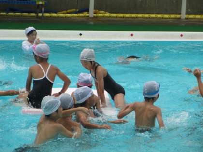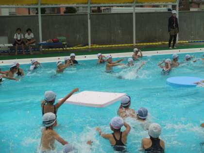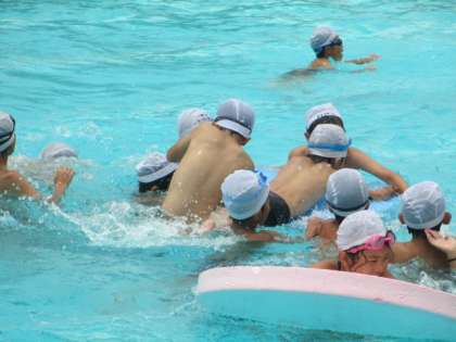 しっかりと泳いだ後は、自由にプールの中で遊んでいます。