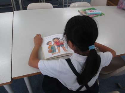 友達に本の読み聞かせをしたり、紙芝居を読んだりしています。