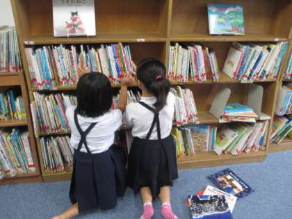 低学年図書室の本の整理を手伝ってくれている子もいました。