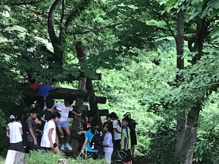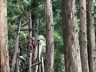 アスレチックを楽しんでいます。みんな、なかなかじょうずです。