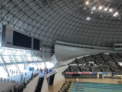 夏の練習を乗り越えて、大会が始まりました。大阪市の小学校115校が参加するこの素晴らしい東和薬品ラクタブドームのプールで子供たちは泳ぎます。多くの声援に囲まれ、子供たちは少し緊張していますが、この経験はきっといつまでも心に残ることでしょう。がんばれ長吉東小学校。
