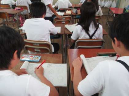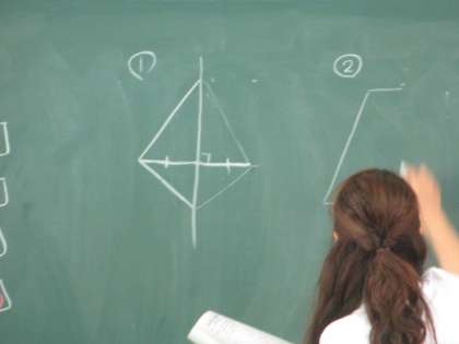 ちょうど、線対称な図形のところです。少し忘れてしまっている人もいるようです。