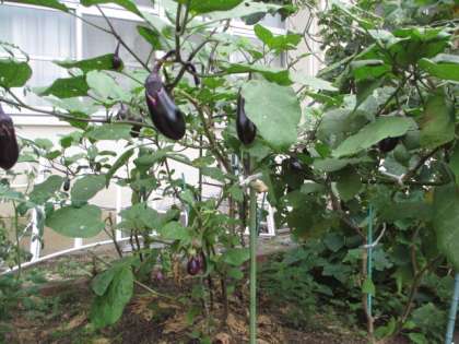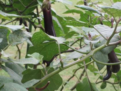 1学期末から収穫できていたなすびですが、不要な枝や葉を落とし、秋茄子に挑戦しています。まだまだたくさん実をつけています。