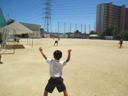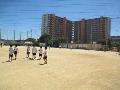 運動場は、お日様に照らされて、気温も上がり、とても暑いですが、