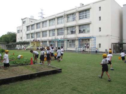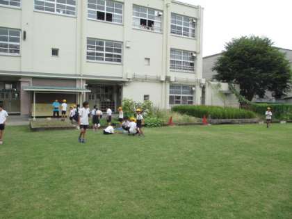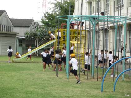 遊具だけではなく、芝生で走り回り、鬼ごっこをしています。