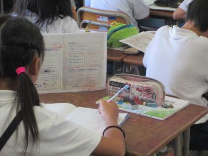 前の時間に学習した広告と説明書のそれぞれの観点を踏まえ違いを記述していきます。