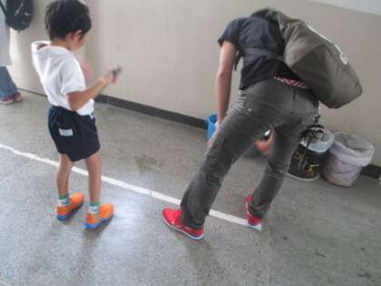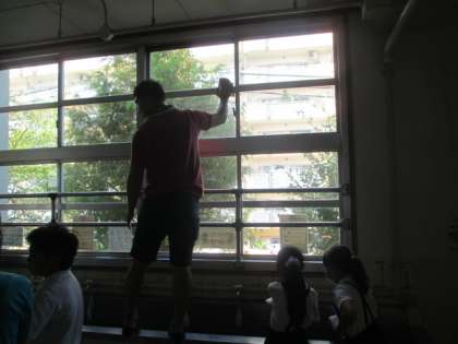 保護者の方とともに清掃活動をしたり、上級生が下級生に掃除のしかたを教えたりする光景がたくさん見られました。