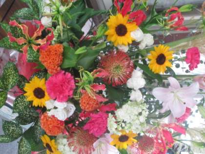 昨日の敬老会で飾られた花が玄関に置いていただきました。