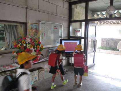 豪華な花に、登校してきた子どもたちも喜んでいました。