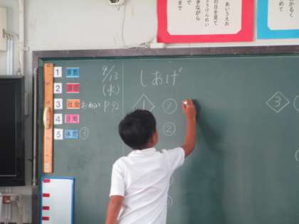 自分で問題を解いていき、順番に黒板に答えを書いていきます。
