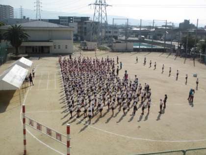 晴天の中、気持ち良い空気の中で、全校揃って行進。