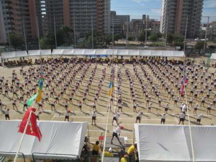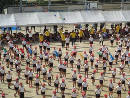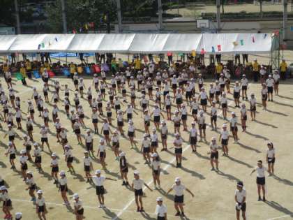 これから始まる運動会のために、しっかりと体操。