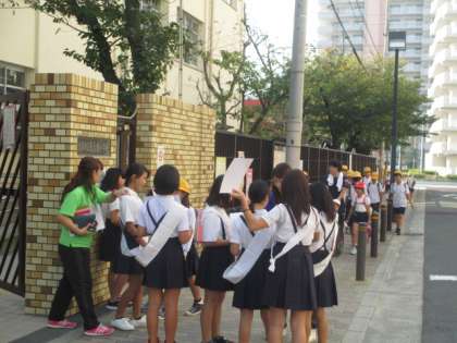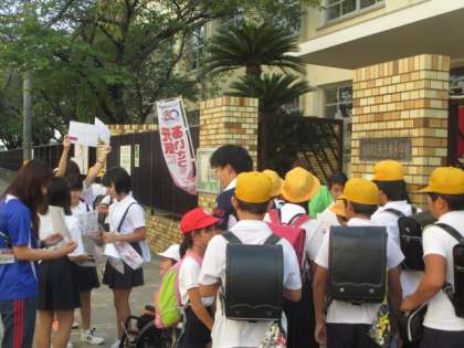 代表委員会のみなさんが中心になって、「おはよう」の声をかけています。