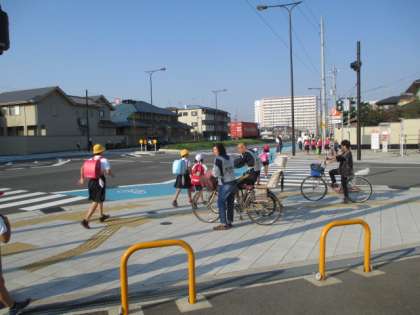 交通安全学習のため、4年生が自転車で登校している人もいました。