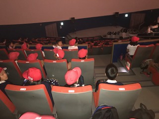プラネタリウムが始まりました。子どもたちは興味津々です。星が出るときれいという声が上がりました。