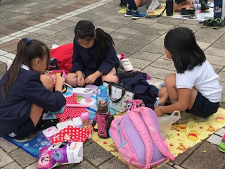 お弁当の時間です。お天気ももって、そとで食べることができました。