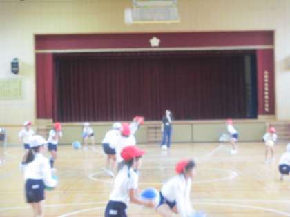 ボールを上に投げて、何回拍手できるかに挑戦しています。