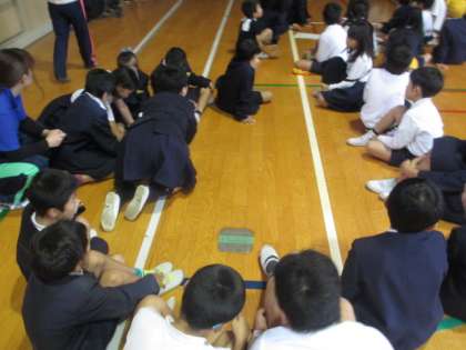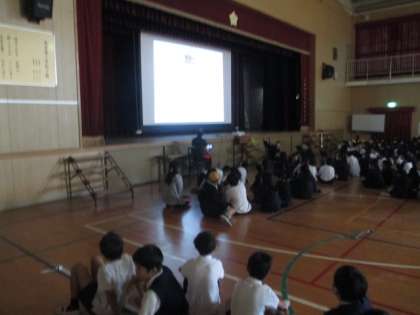 集会委員が撮影したものをスライドで見て班で考えて答えを書きます。