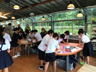 モクモクファームスタッフの方から愛情をたっぷり入れてこねてくださいと言われました。一生懸命にパンづくりを楽しむ子どもたちです。