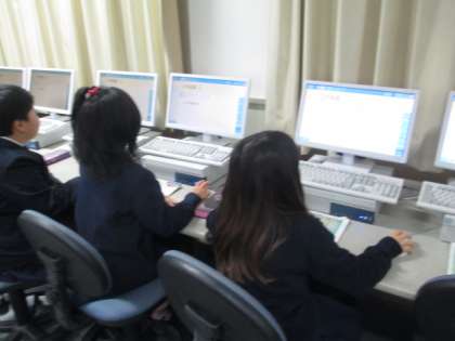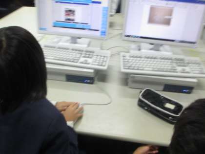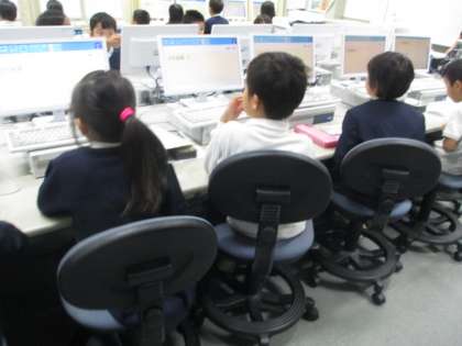 PCルームで、秋の遠足の新聞作成に取り組んでいます。