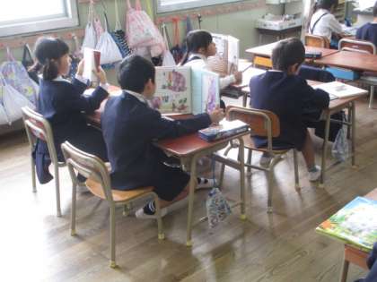 1年生のみなさんも、読書週間の仕方についてわかってきたようで、自分の気に入った本を選んで静かに読書を楽しんでいました。