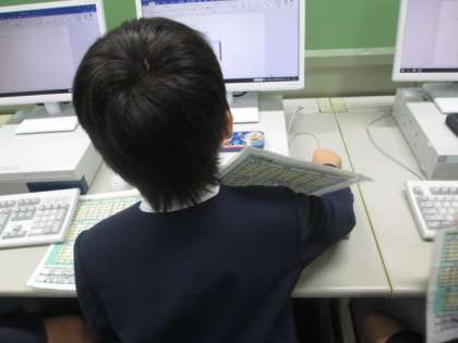「ながよし」と打っても、「長吉」と変換されずに、「永吉」と変換されるときもあります。子どもたちはそれに慣れていないため悪戦苦闘。ローマ字表を片手に、キーボードを使っていました。