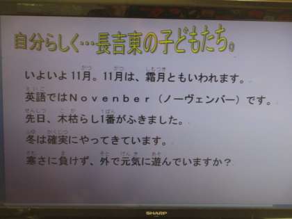 校長先生のメッセージ 11月1日