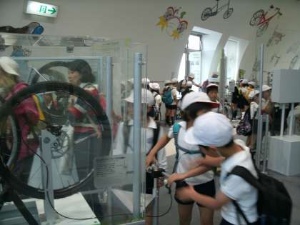 自転車博物館で昔の自転車を見学した後、実際に昔の自転車に乗る体験をしました。