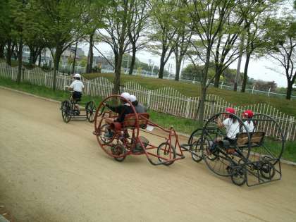 二人乗りなど、普段は乗れない自転車に大喜び。バランスをとるのが難しいもの、思うように曲がりにくいものなどもありますが、上手にコースを回っていました。