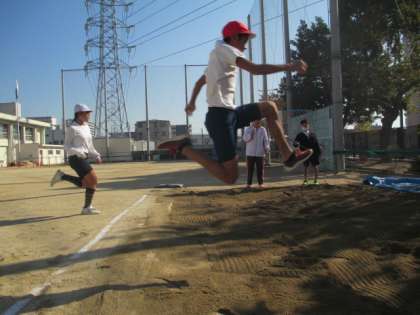 初めに走り幅跳びをしました。