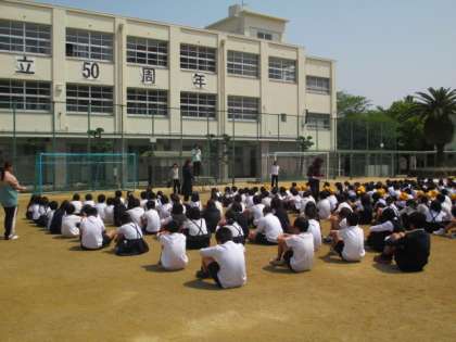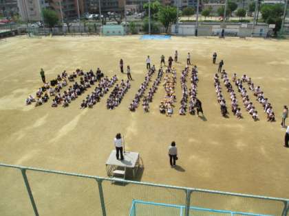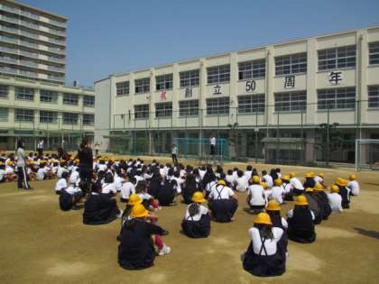 避難開始の放送がなってから、運動場に避難し終えるまでにかかった時間は、3分を切っていました。静かで落ち着いた訓練でした。