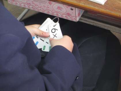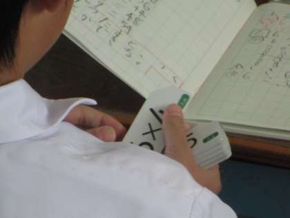 九九カードを使って、一つ一つ答えを確かめながら学習しています。