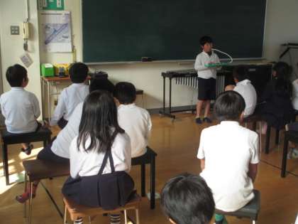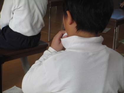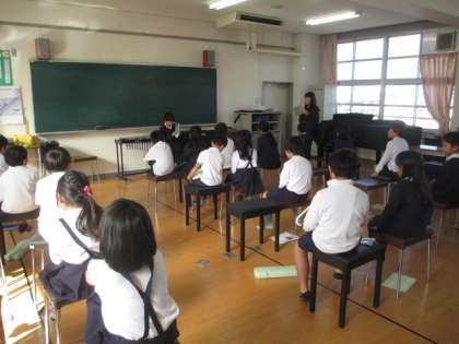 一人一人みんなの前で鍵盤ハーモニカを演奏しています。