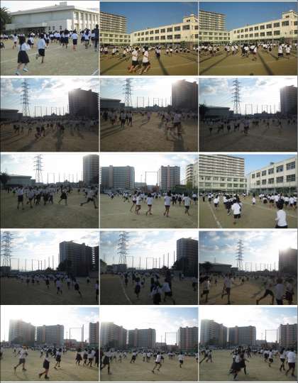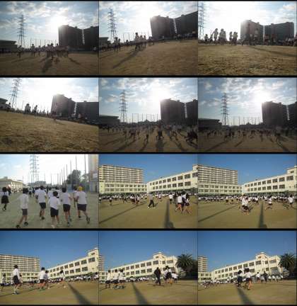 先週までの寒さもなく、明るい日差しの中で。元気よく運動場を走っていました。