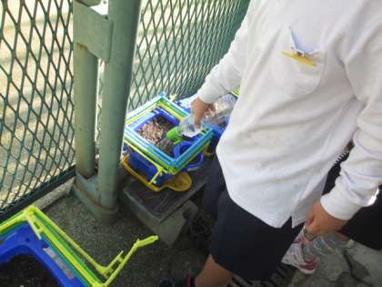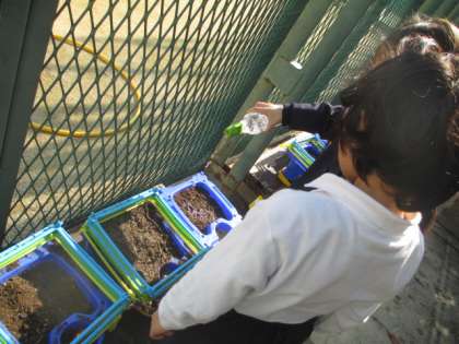 アサガオを育てていた鉢に、チューリップの球根を植えました。