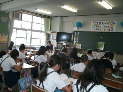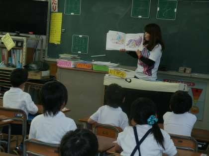 1年生は、先生から絵本の読み聞かせをしてもらいます。