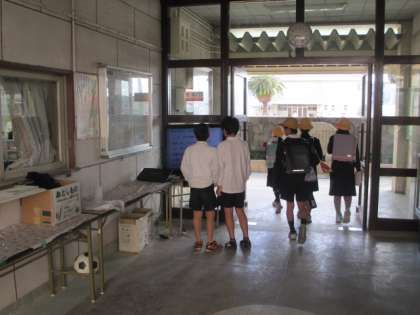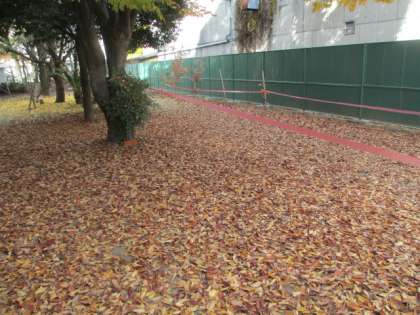 明日のコースになる、講堂北側の欅の葉も落ち、見事な絨毯になってます。