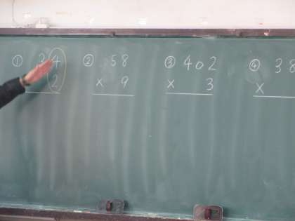 かけ算の筆算をみて、記号をしっかり見ずにたし算にしている人もいました。