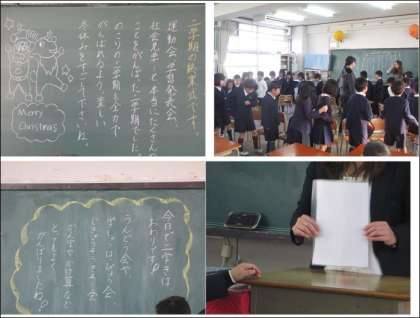 そのあと、担任の先生より、今学期頑張ったところ、来年伸ばしたいところ、いろいろなおはなしをしたあと、ひとりひとりに通知表が配られました。