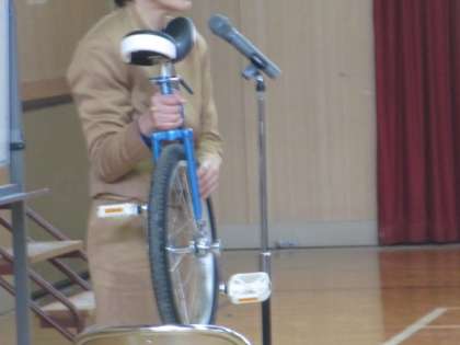 また、昨年末、ベルマークの点数で、届いた一輪車の紹介がありました。