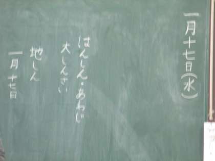 阪神淡路大震災時の様子や東日本大震災時のことを子どもたちは熱心に聴いていました。