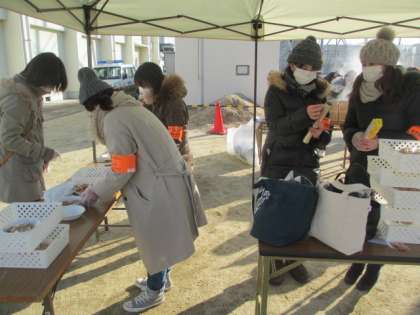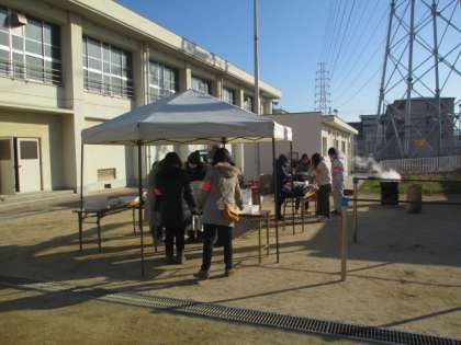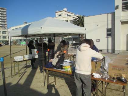 PTAのみなさんのご協力を得て、アルファ米の炊き出しをしていただきました。