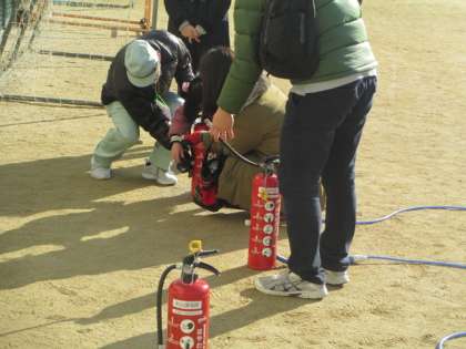 保護者の方には、水消火器を使って初期消火をしていただきました。