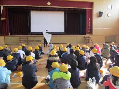 5年生6年生のみなさんは、三角巾の使い方を教えていただきました。