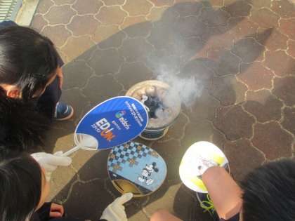 なかなか炭に火がつかず、悪戦苦闘している班も多かったです。