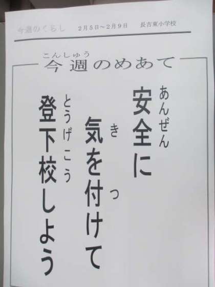 「安全に気を付けて、登下校しよう」