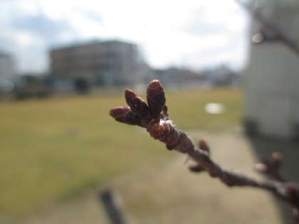 校内のサクラも寒い中、つぼみをつけています。