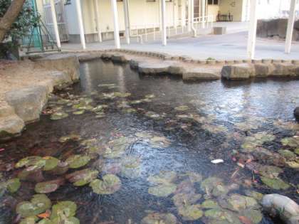 今週も冷え込みが厳しくなっています。講堂前池も再び氷がはるようになりました。