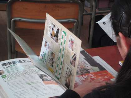 国語科で学習した「プロフェッショナル」から、将来なりたい職業について調べています。図書資料を調べながら、職業の特徴について新聞にまとめています。