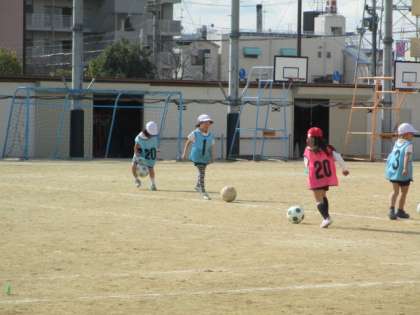 初めのころをに比べて、すいすいドリブルできる子が増えてきました。